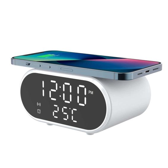 The 2 in 1 Alarm Clock and Wireless Charger is the perfect blend of functionality and modern design. It keeps your devices charged, helps you wake up on time, and monitors room temperature, all while complementing your decor. A great choice for home or office, and an excellent gift for tech enthusiasts!