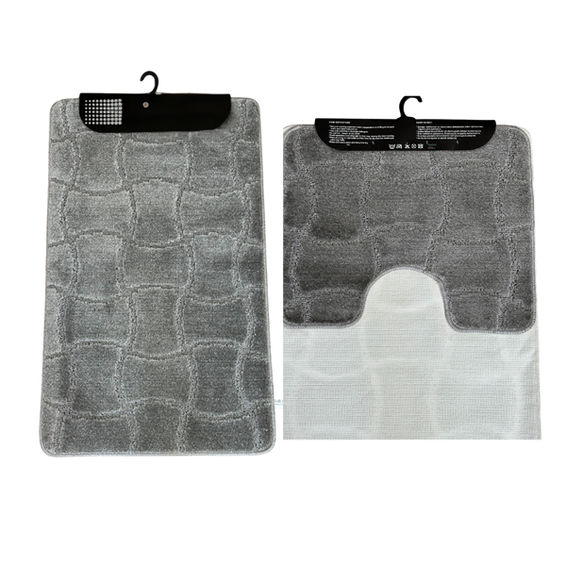 2-Piece Bathroom Mat Set – 60x100 cm Bath Mat & Contour Toilet Mat – Soft, Absorbent & Anti-Slip – Gray Stone Pattern