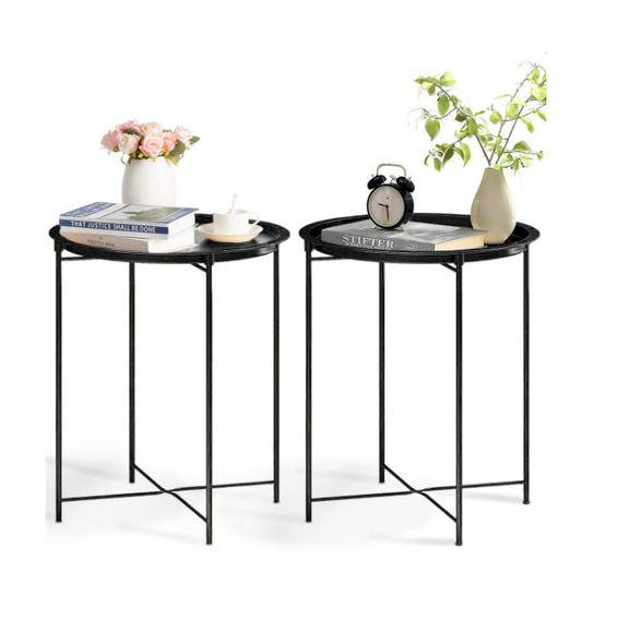 2 Pieces Side Tables Round End Tables Steel Patio Tables Nightstands - Black