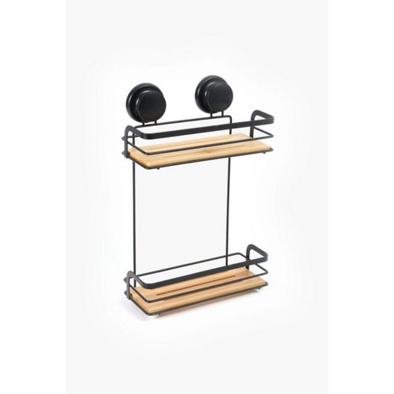 2 TIER BAMBOO SUCTION SHOWER CADDY Modern, Spacious & Easy-to-Install Organizer