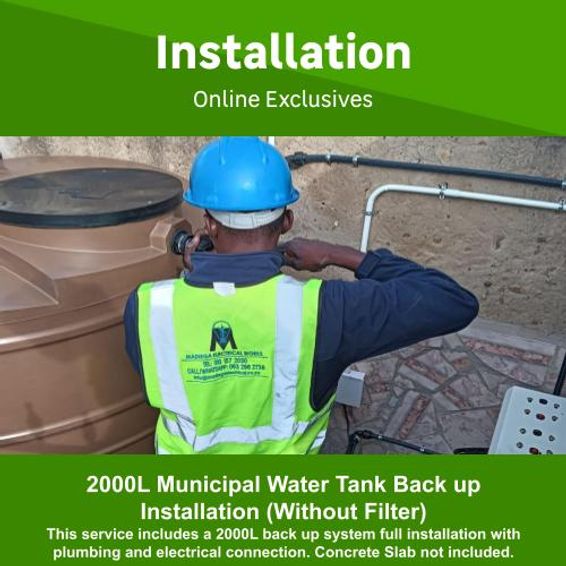 2000L Municipal Water Tank Back up Installation without Filter by Madiega Electrical Works