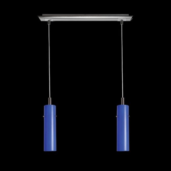 �230v 40W E14 2 Light Tube Glass PendantColour:�Chrome with Blue GlassMeasurement in cm:�Full Height: 190 Length: 46 Width: 4Glass: Height: 22 Diameter: 5.5Lamps:�2 x E14 Candle BulbWattage:�230v 80WIP Rating:�IP20