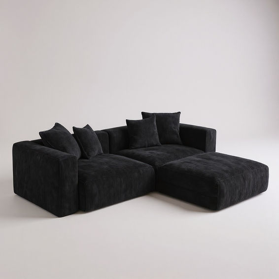 3 Seater Couch - Corduroy fabric - Black - With Ottoman