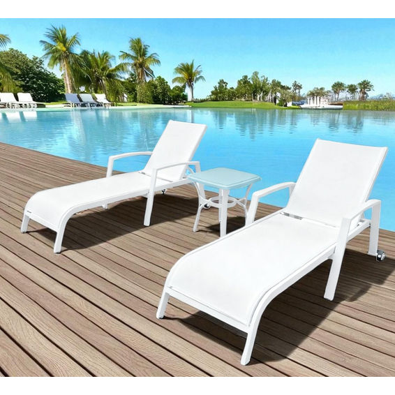3pc White Aluminium Pool Lounger Set with Side Table
