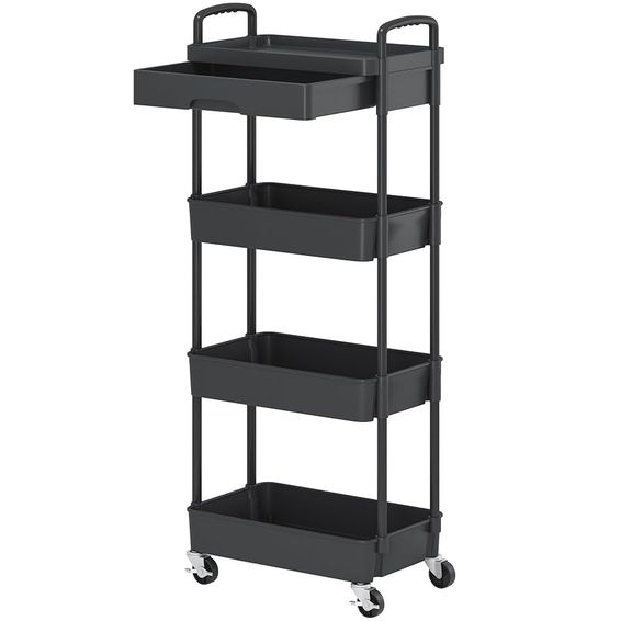 4-Tier Utility Cart With Drawer - BLACK