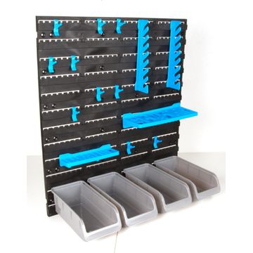 Organize your workspace with this comprehensive 43 piece storage bin kit. Keep your tools, hardware, and small parts neatly sorted and easily accessible with this convenient storage solution.