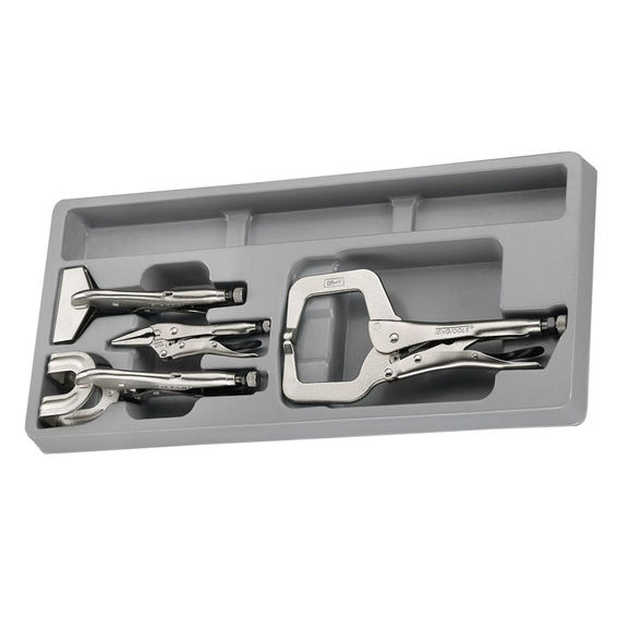 4 piece tray containing C clamp, welding, sheet metal and 6inch long nose power grip pliers. Supplied in the unique Teng Tools TTPS tray for use on its own or as part of the Get organized system.