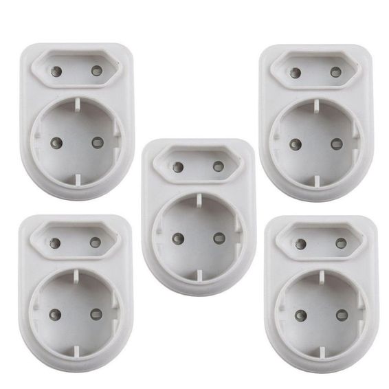5 Pack Plug Adaptor - White - 1 x Round 2 pin 16A with 1 x 2 pin 5A