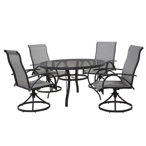 5-Piece Black & Grey Patio Dining Set with Swivel Chairs