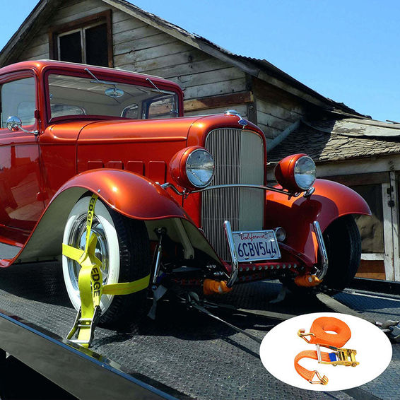 Colored polyester makes it easy to coordinate tie-downs with the vehicle, trailer, or logo colors. Orange strap in a longer 30′ length has a wide-handled ratchet and spring-loaded flat snap hooks on each end for secure attachments. Meets or exceeds WSTDA guidelines; sewn-in tag lists working load limit information.