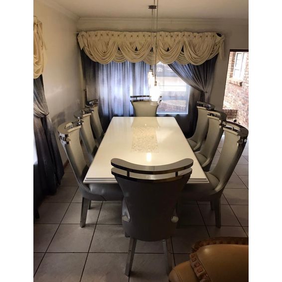 8-Seater Stainless Steel Dining Room Suite With Weaver Table and Wood Top
