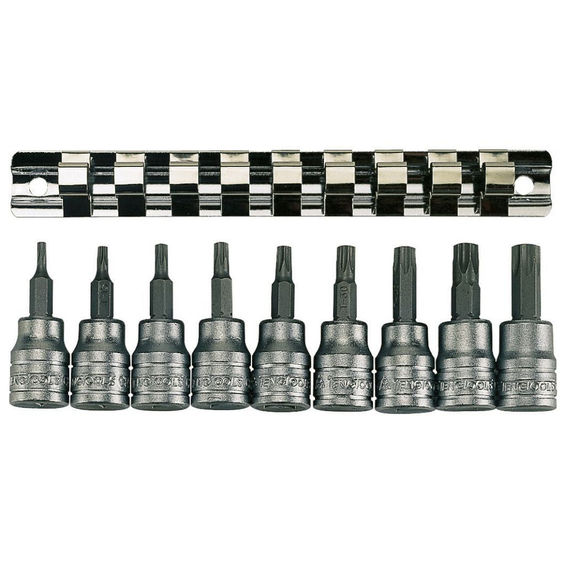 9 piece 3/8inch drive TX sockets supplied on a clip rail for internal TX heads.