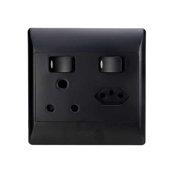 ACDC - Black 1x16A And 1 Euro Sw Socket Outlet 4x4 With Cover Plate