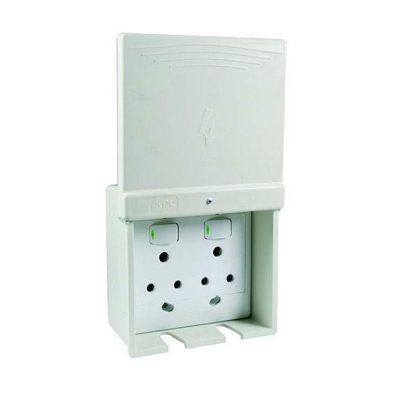 ACDC - W/P Surface 16A Double Socket Outlet Dmc Ral7032