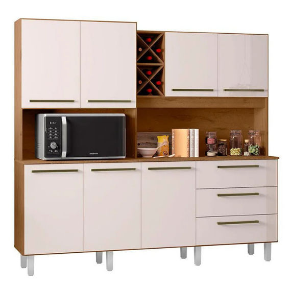 Ajax Kitchen Cabinet with 7 doors and 3 drawers Cinnamon/Sand