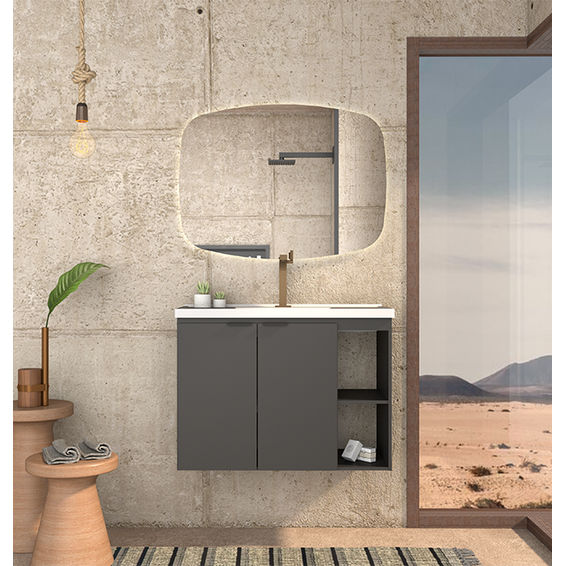 The Aster 80 wooden bathroom is one of the highlights of our line. The Aster has a large internal space, with steel handles, cushioned hinges and the option of a synthetic marble top or sink. Product Specification: - Product: Dressing table - Model: Aster 80 - Washbasin: yes - Top: black brushed granite or white granite - Number of doors: 2 - Number of drawers: 0 - Number of niches: 2 - Structure: Mdf and Mdp - Handles: steel - Hinges: with cushioning - Has internal finish on the doors: yes - Has background: No - Has feet: No - Has siphon passage: Yes
