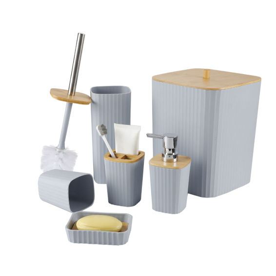 Bathroom Set with Wooden Finish - 6 Piece