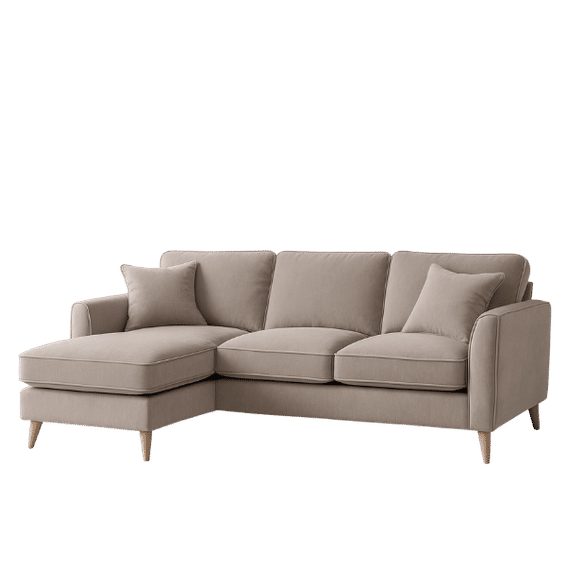 Beige Fabric L-Shape 3-Seater Sofa with Chaise
