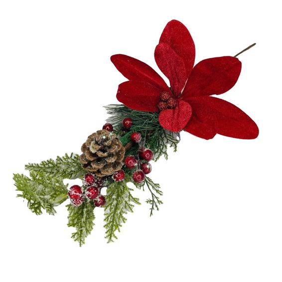 BERRY & PINE SPRAY WITH WHITE POINSETTIA