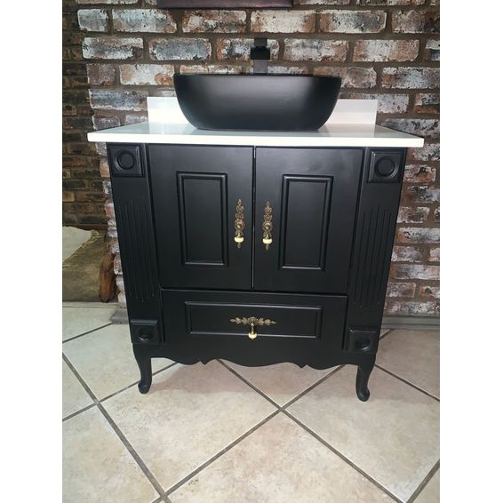 Black Bathroom Vanity – 800 x 500 with basin & tap
