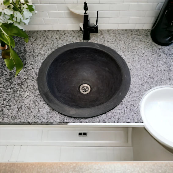 Black Bespoke Round Concrete Drop-In Sink 43x43x15cm