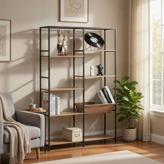 Bragg Essential Display Bookshelf with Magazine Shelf, Oak & Black