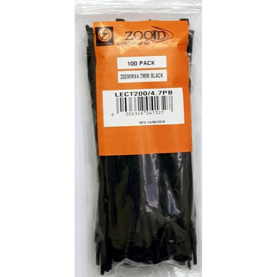 Cable tie ZOOID black 200mm x 4.7mm 100 pieces per pack