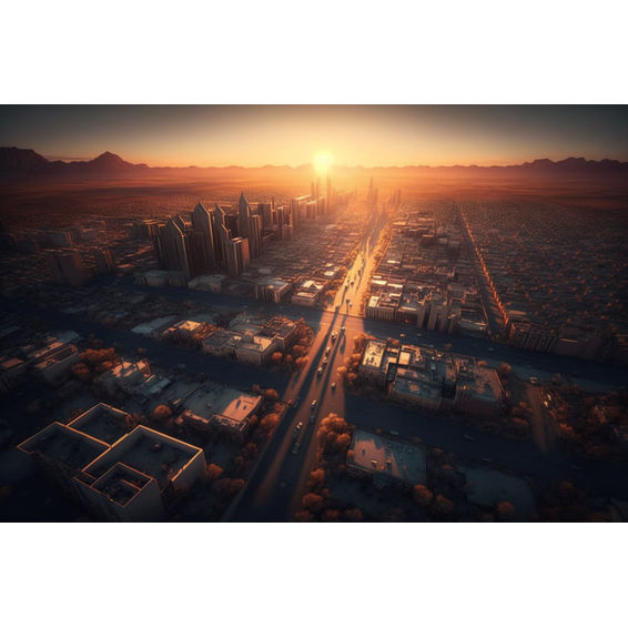 Canvas Wall Art - Ariel Sunset City View - B1459 - [120 x 80 cm]