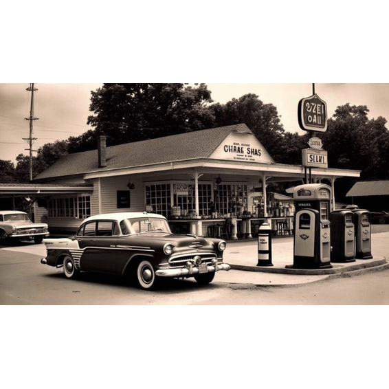 Canvas Wall Art - Canvas Wall Art-Gas Station in the 60s - B1163 - [120 x 80 cm]