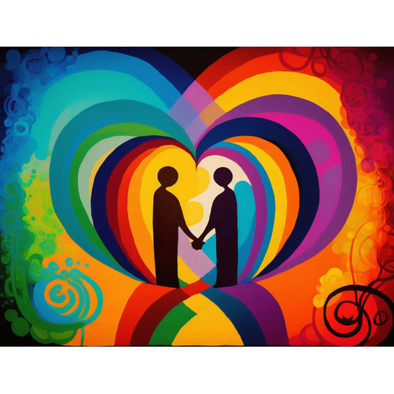 Canvas Wall Art - Love; Two Figures Holding Hands - B1359 - [120 x 80 cm]