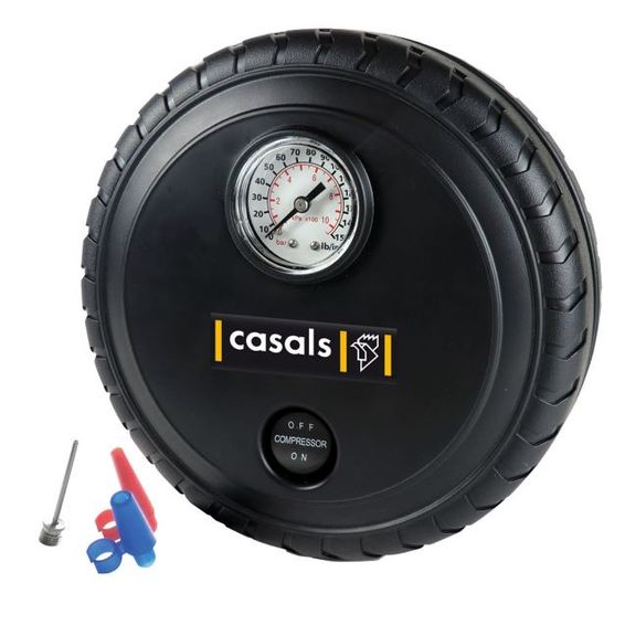 The Casals air inflator boasts an impressive 17 Bars capable of inflating your car tyre within minutes. This unit comes complete with nozzles and a needle to inflate your sports ball.
