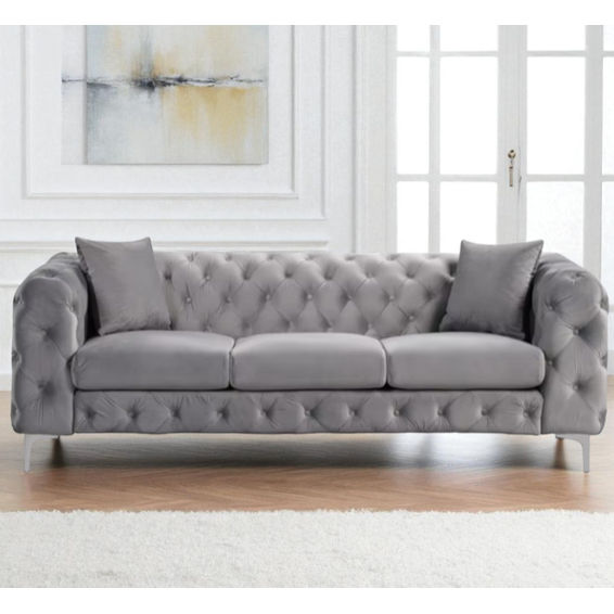 Chesterfield Couch - Light Grey - Velvet 3 Seater