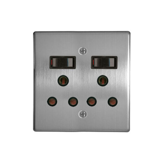 ACDC - 2x16A Switched Soc Outlet 4x4 C/W Silver Steel Cover Plate