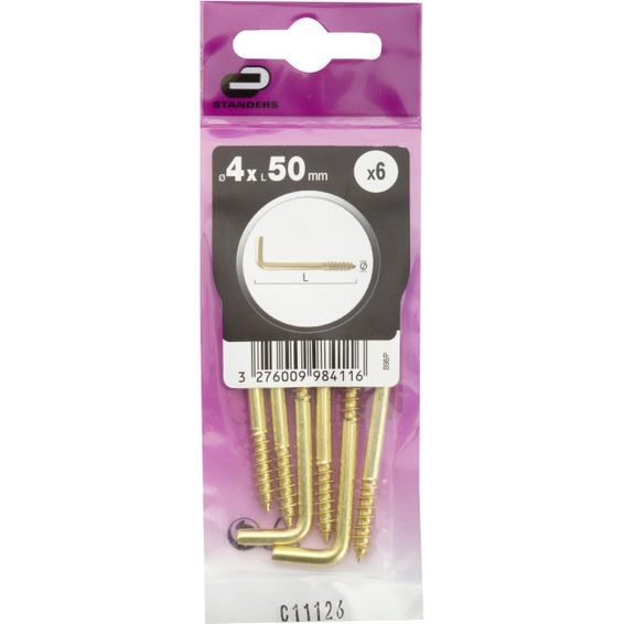 Cup hooks square brass plated 4.0x50mm 6pc standers