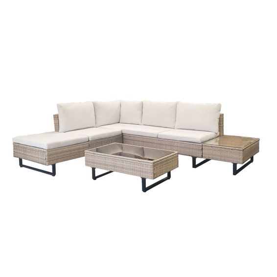 Cyprus Corner Lounge Patio Set - Brown with Light Grey Cushions