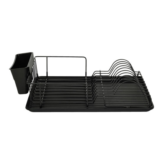 Introducing the sleek and stylish DEL Dish Rack with Cutlery Holder in classic black. This essential kitchen accessory not only keeps your dishes organized and dry but also adds a touch of elegance to your countertop.