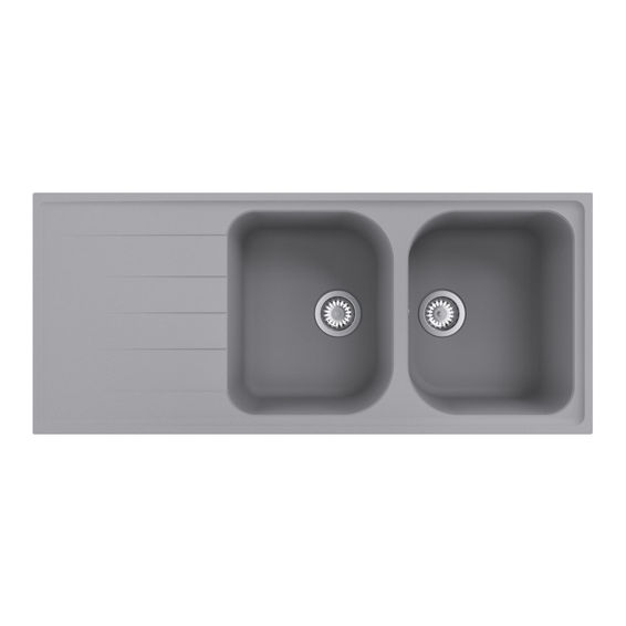 Delinia Kitchen Sink Elbe Double Bowl Single Drainer Quartz / Resin Composite Grey L116Cm X W50Cm