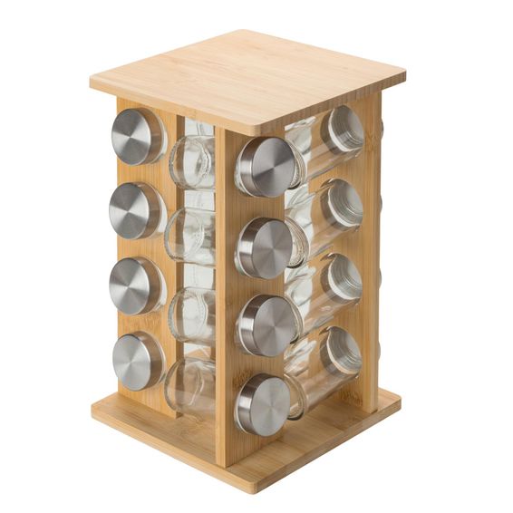 Delinia Spice Rack with 16 Glass Spice Jars Bamboo W17.5Xd17.5Xh30Cm