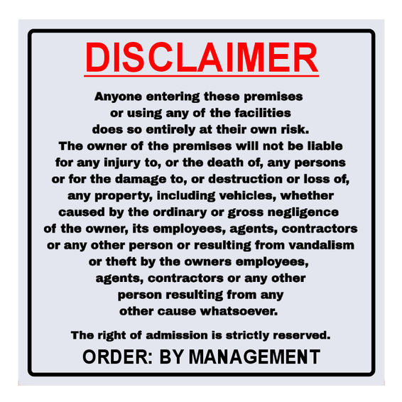 Disclaimer Notice Sign Board - Durable ABS Plastic Warning Sign
