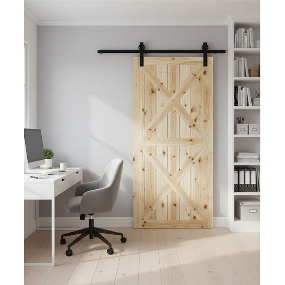 Double X-Brace Barn Door with Vertical Slats & Hardware Kit (2100mm x 920mm x 36mm)