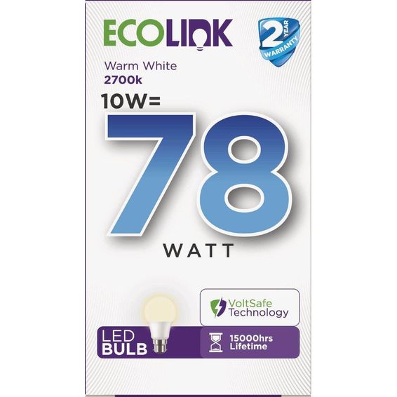 Ecolink led light bulb 10w 1055lm b22 2700k nd af