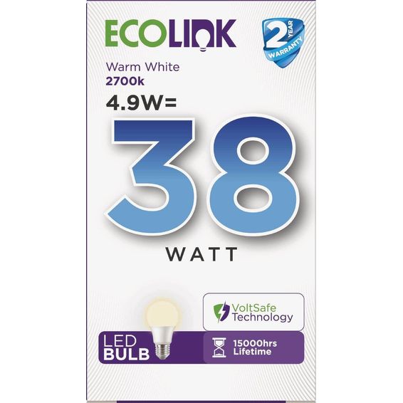 Ecolink led light bulb 4.9w 470lm e27 2700k nd af