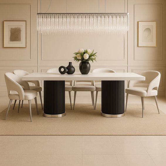EFURN- Vittoria 6 Seater Dining Set Black & Silver