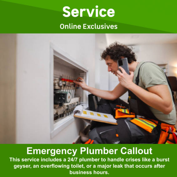 This service includes a 24/7 plumber to handle crises like a burst geyser, an overflowing toilet, or a major leak that occurs after business hours.