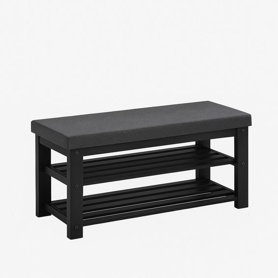 ENTRYWAY SHOE STORAGE BENCH WITH CUSHION, BAMBOO BLACK