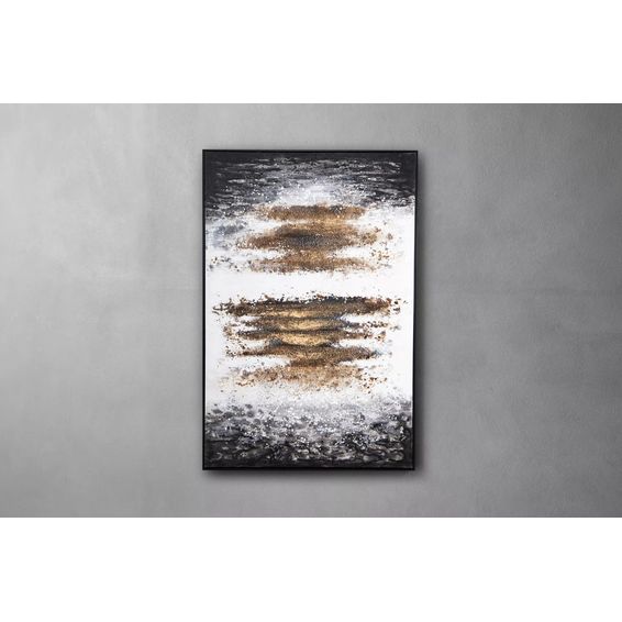Everest Hand Painted Canvas Art – Luxury Abstract Wall Art in Gold & Grey with Floating Black Frame