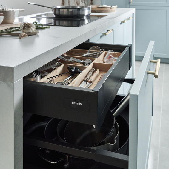 Extendable kitchen cutlery organiser bamboo