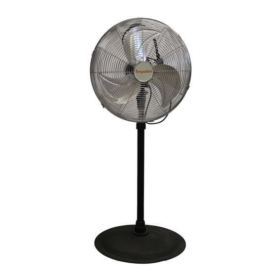 45cm Pedestal oscillating fan with 3 speed control knob, height adjustable, chrome guard and black metal base