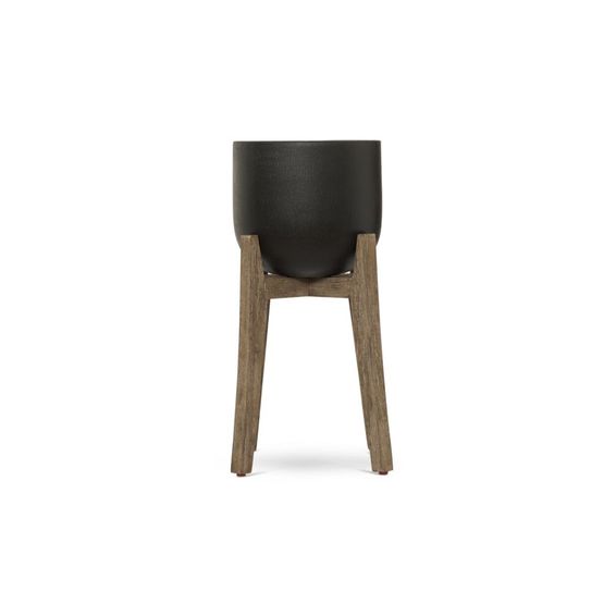Ficonstone Planter Black on Acacia Wood Stand – Indoor Planter 64.5cm