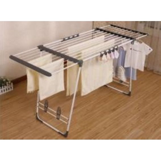 Foldable Clothes Drying Rack, White Metal, Large Floor Standing Design